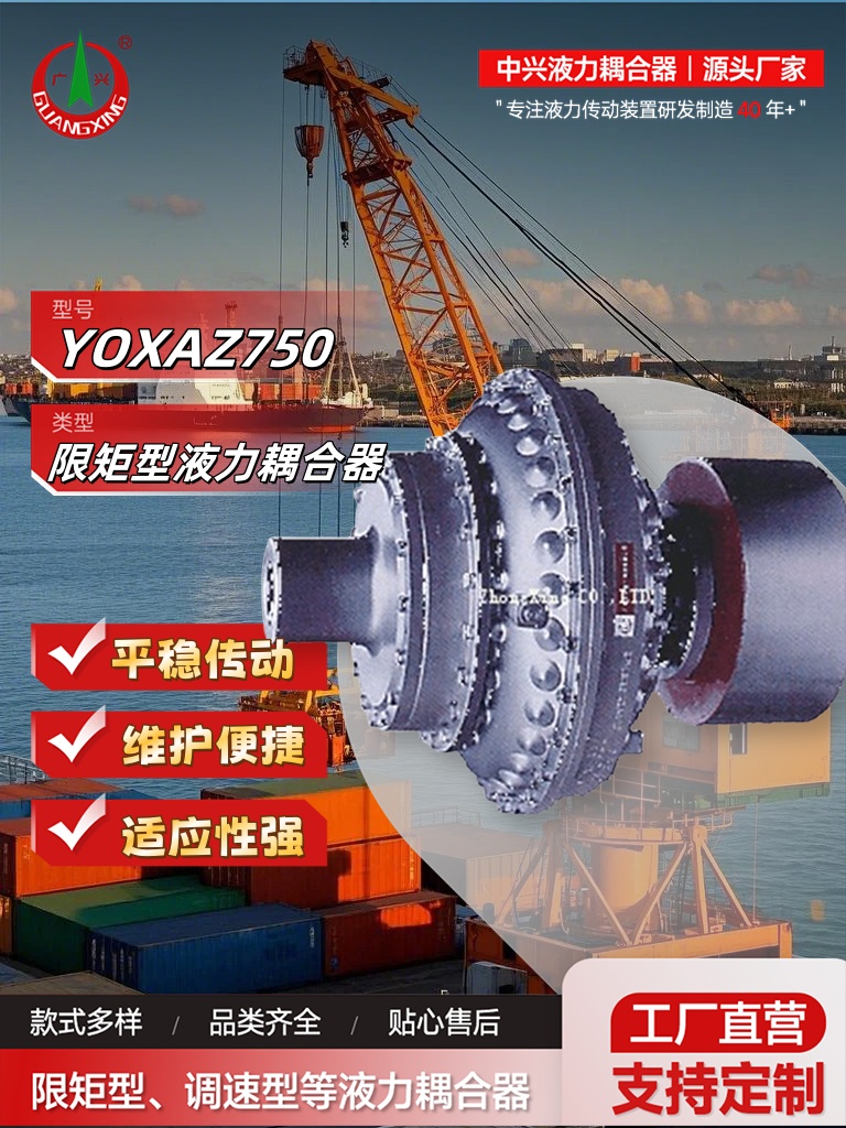 中興液力自主研發(fā)的YOXAZ750限矩型液力耦合器,憑借其創(chuàng)新設(shè)計與成熟技術(shù),為港口裝卸起重機提供了一套高效、安全、耐用的動力傳動解決方案。